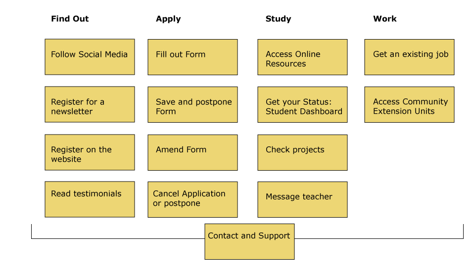 In a Task activity group to better define a User Flow, we have considered all the possible tasks the student wants to accomplish when he interacts with the websites.